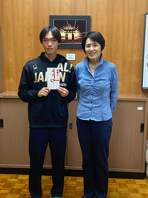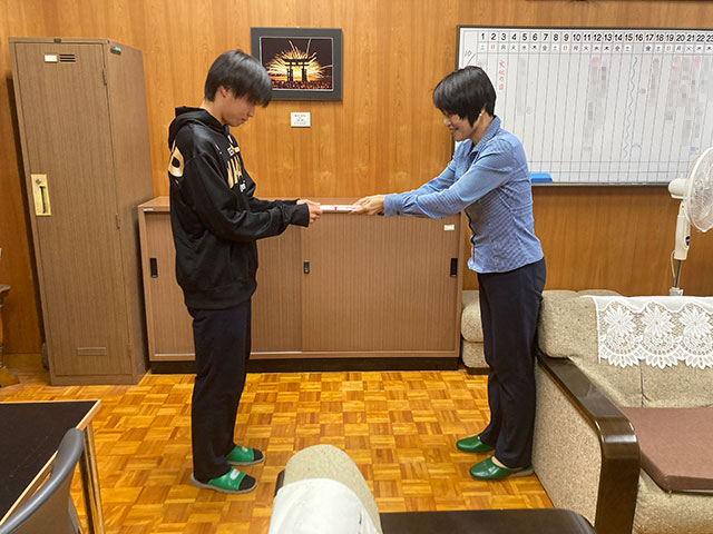 2025年10月17日~10月19日三重交通Gスポーツの社伊勢陸上競技場で行われましたJOCジュニアオリンピック第19回U18陸上競技大会 800mに3年 豊村宏太くん、300mハードルに2年 佐野悠真くんが参加しましたので、10月23日にお祝いを渡しました。
