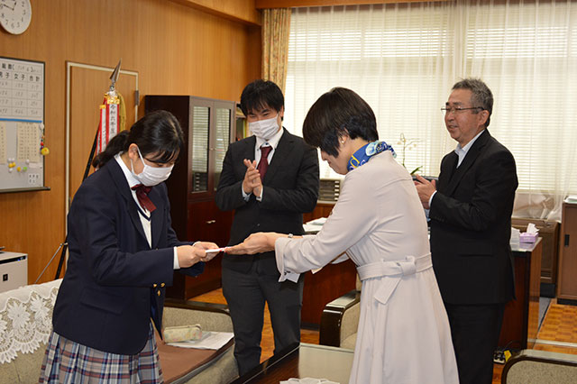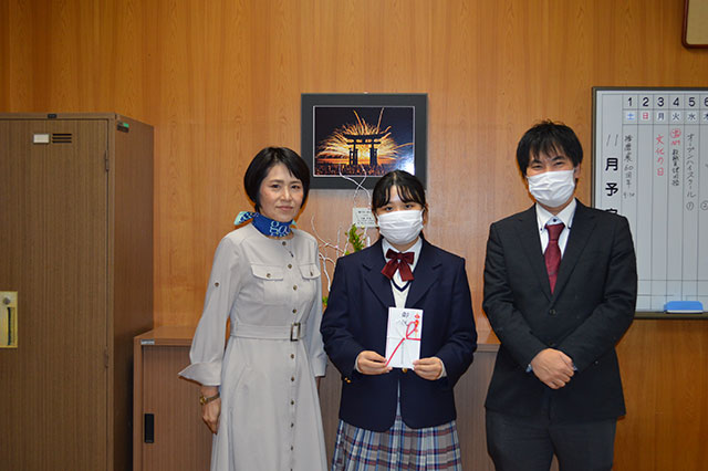 令和8年1月29日(木)~31日(土) 山形県天童市で行われます第34回全国高等学校文化連盟将棋新人大会に1年将棋部 山本佳奈さんの出場が決まりましたのでお祝いを贈呈しました。